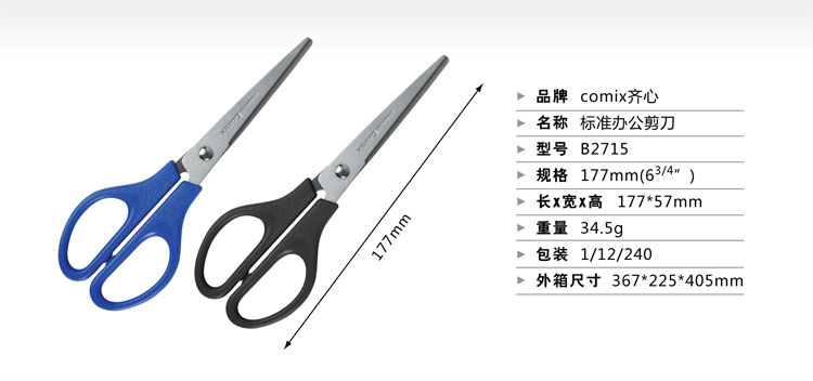 齐心标准办公剪刀B2715(170mm)配色