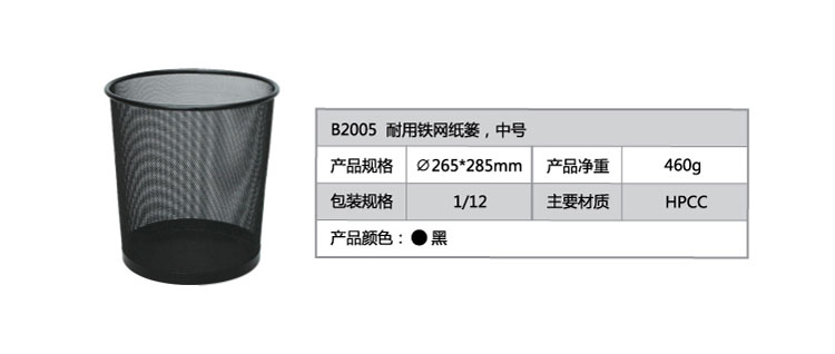 齐心铁网圆纸篓中号B2005黑