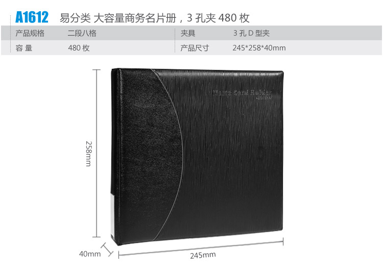 齐心商务名片册,3孔夹480枚A1612