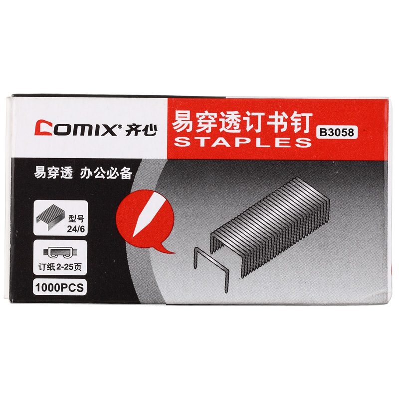 齐心易穿透订书钉(24/6,25页)B3058