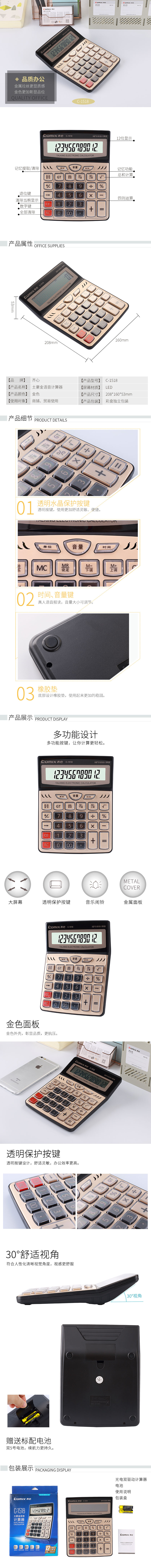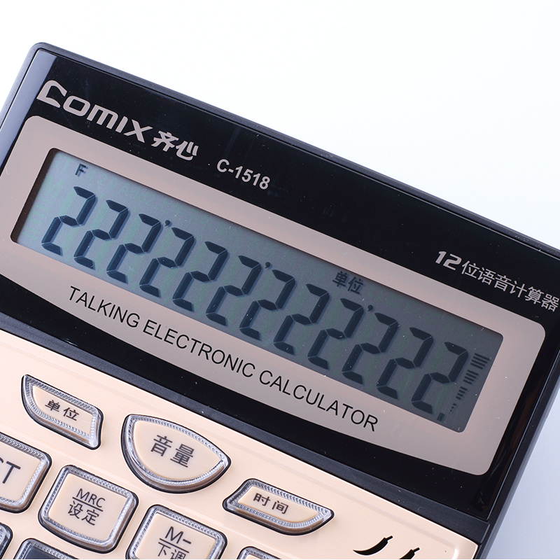 齐心 C-1518 计算器 大台 土豪金语音12位