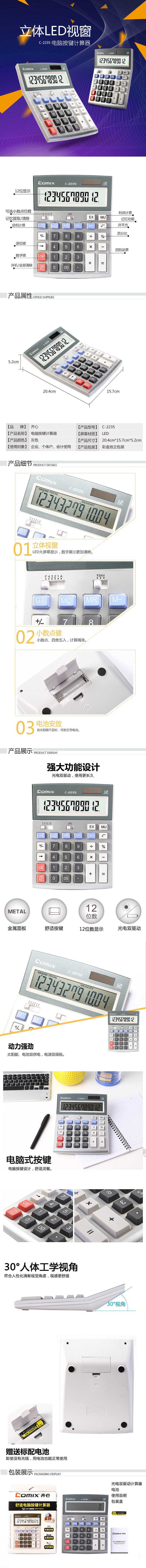 齐心 C-2235 计算器 大台 普通舒适电脑按键