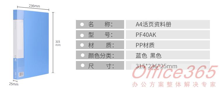 商品属性sadss [颜色] 蓝 [规格] A4 [型号] PF100AK-1 [单位] 个 [包装] 8个/件