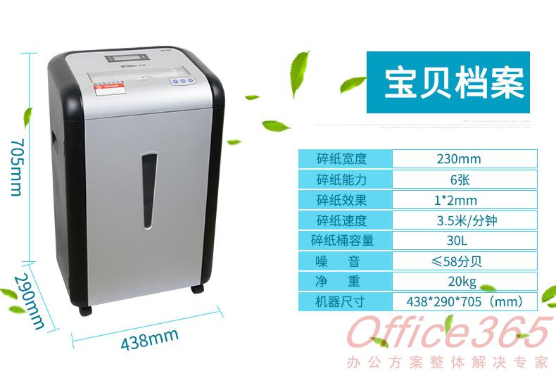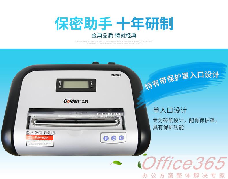 商品属性sadss [商品型号] GD-310P [外形尺寸] 438*290*705mm [保密等级] 6级 [碎纸速度] 3.5m/min [碎纸效果] 1*2mm [纸屑桶容量] 30L [碎纸能力] 5张/70克A4